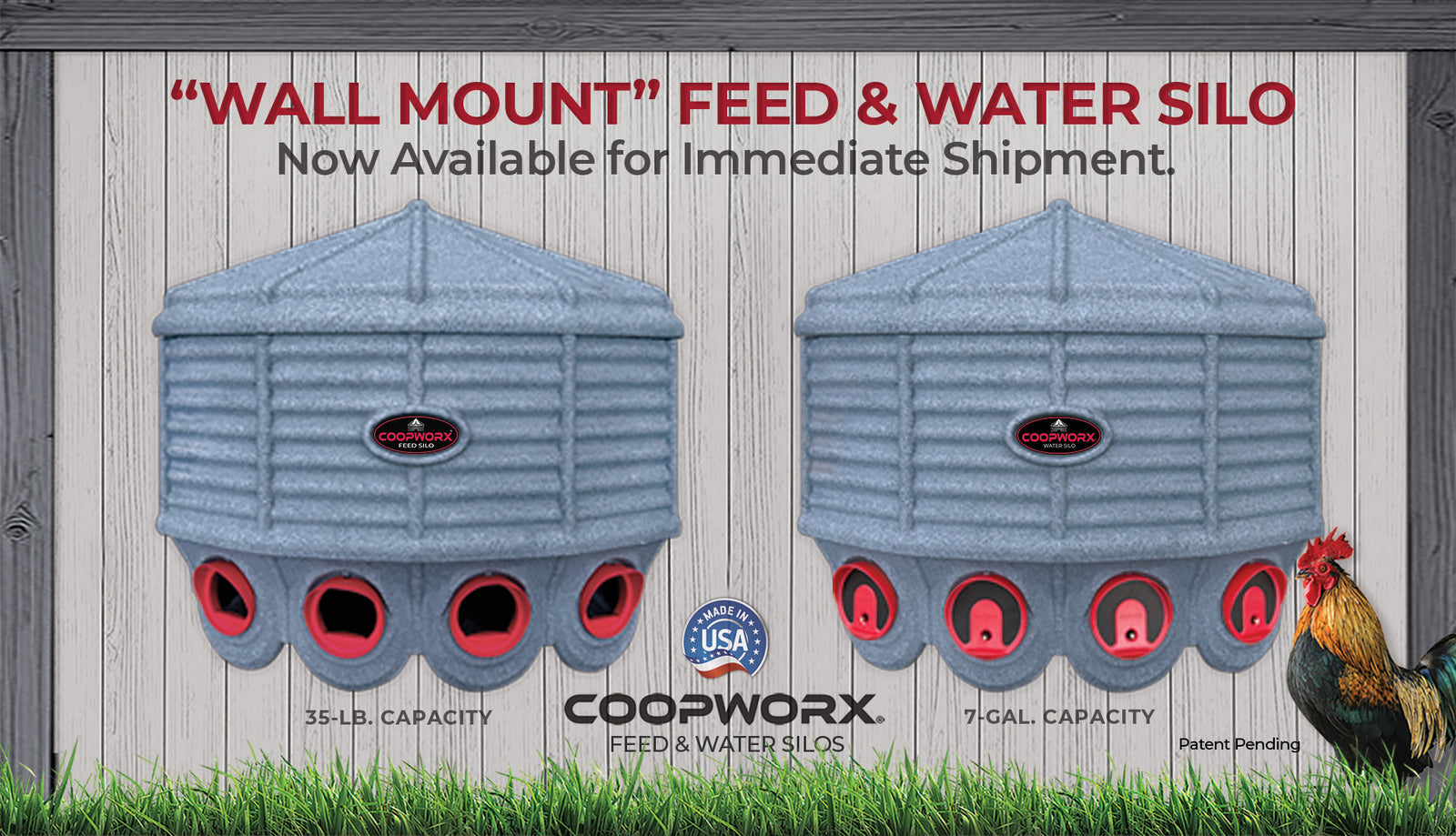 CoopWorx, features a roost-resistant hinged lid that provides easy access to load feed, and integrated drip edges to channel water away from the ports.