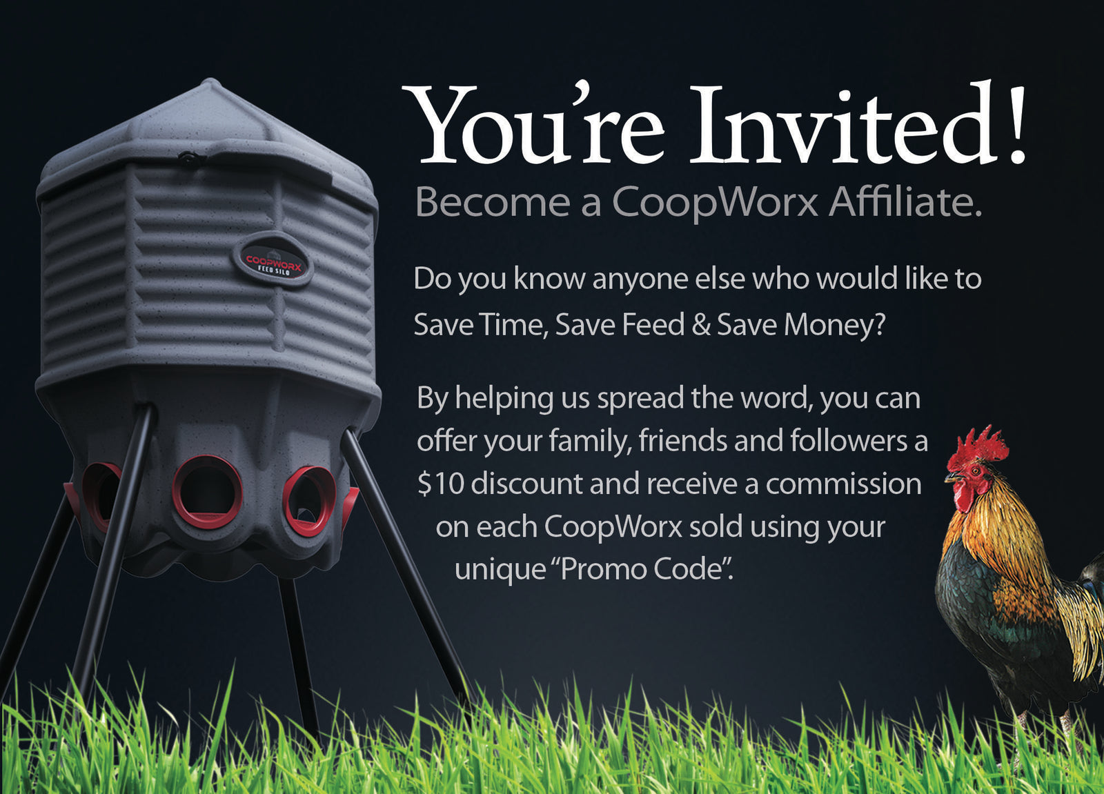 As a CoopWorx Affiliate you will receive a unique “Promo Code” that allows you to offer a $10 discount to any of your contacts, and in return you will receive a commission each unit sold using your promo code.